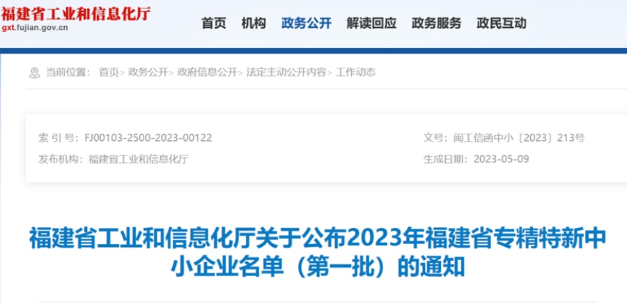 5月9日,福建省工業和信息化廳公布了2023年福建省“專精特新”中小企業(第一批)認定名單,中科蘭劍成功入選其中,成為“專精特新”企業。