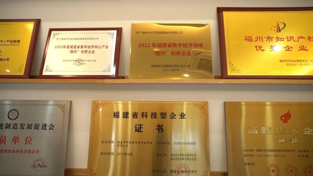 截至目前,福建中科蘭劍智能裝備科技有限公司累計擁有發明、實用新型、軟件著作權、外觀設計等專利200+項,榮獲國家高新技術企業、省“專精特新”企業、省科技小巨人企業、省數字經濟“瞪羚”企業、省服務型制造示范企業、福州市知識產權優勢示范企業等多項榮譽稱號。